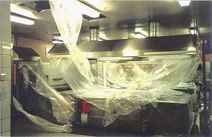Eine Großküche gut verpackt.- Alle Kochblöcke extra abgedeckt.